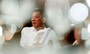 Rodrigo Duterte in December 2016 with a list of police and government officials he says are involved in illegal drugs. Photograph: Rey Baniquet/AFP/Getty Images